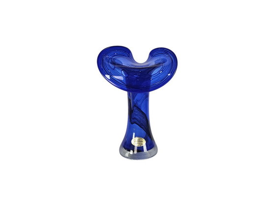 This beautiful vase, designed by Rolf Wiemers in the 1980s, is a stunning example of craftsmanship from Die Glashütte in Bad Karlshafen, Germany. The deep blue color and flowing lines make this piece a striking addition to any interior.