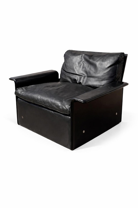 Dieter Rams Vitsoe 620 leather armchair in black.