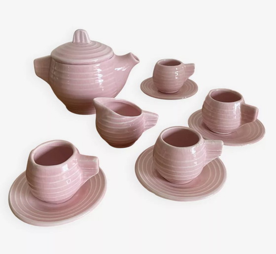 Pink porcelain dinner service from the 1940s. Perfect condition, just a chip on one cup (visible on the last photo).
