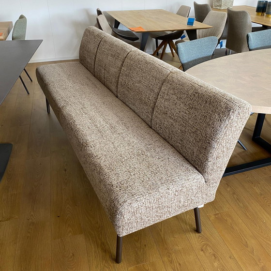 Dinnertalk eetkamerbank Stof: Bello stone Afmeting: Lengte: 220, ZH: 50,5, TH: 90, ZD 46,5 Onderstel: BP404 marron