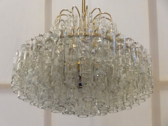 This exquisite Doria chandelier is a stunning example of Mid Century Modern design. Featuring a cascade of transparent glass tubes, it creates a dazzling display of light and elegance. The gold metal frame adds a touch of luxury, making it a perfect centerpiece for any room. Its timeless design and high-quality materials ensure it will be a cherished addition to your home decor.