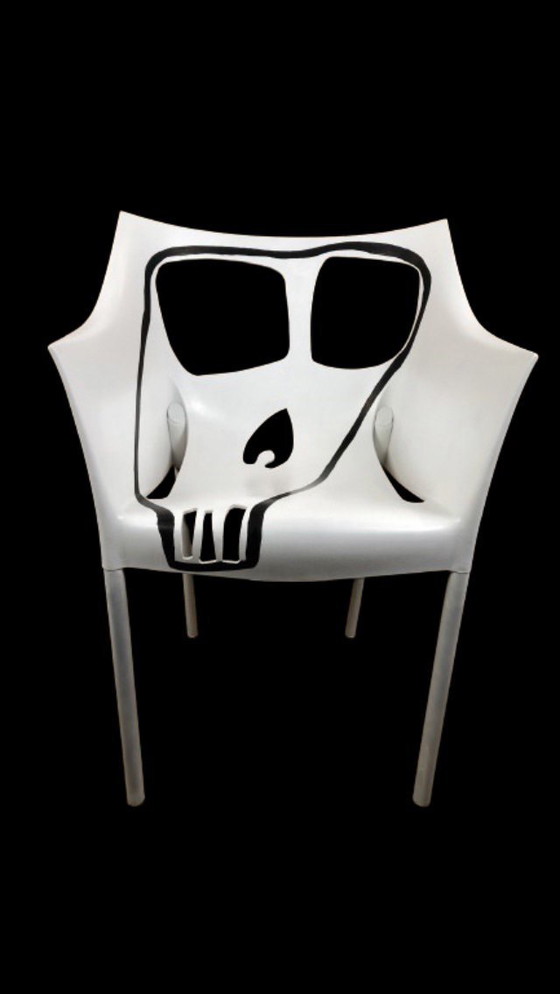 Introducing the Dr NO Manuel Fantaisiste chair, a striking piece of modern design that effortlessly combines functionality with artistic flair. This chair is a testament to contemporary creativity, featuring a bold black and white color scheme that makes a statement in any setting.