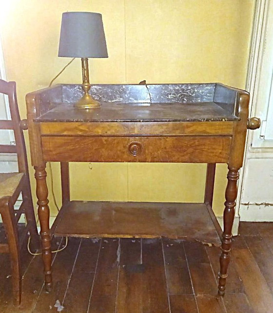 Antique piece of furniture of family origin which formerly served as a dressing table. Made of wood and marble.
