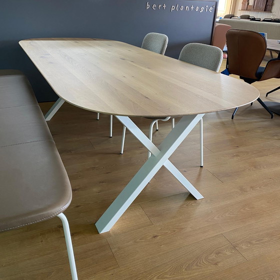 Dining table Shape: flat oval Edge finish: boat shape Color: rustic oiled oak Dimensions: 220 x 100 x 75cm
