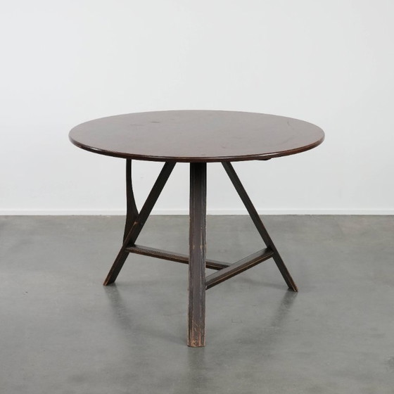 Up for auction is this beautiful and practical 20th-century Dutch dining/folding table with a diameter of 105cm.