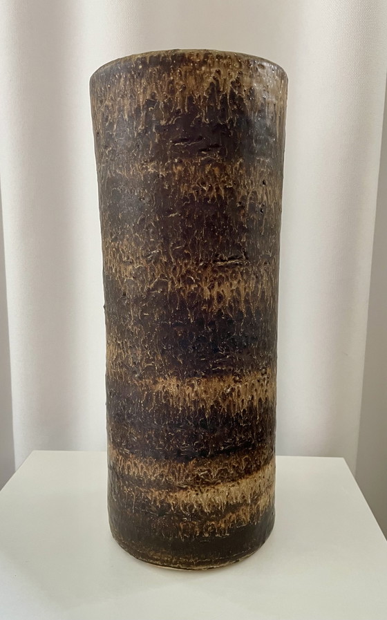 Vintage ceramics from the 1970s. Cylindrical shape, robust, earthy “birch bark” glaze. Height: 31 cm, diameter: 12 cm. Weight: approx. 2.4 kg.