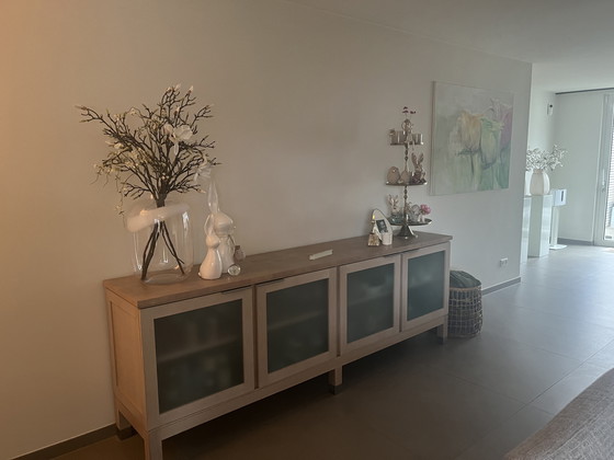ConditionGoodColorsGrey, White, Beige, BrownMaterialWood, GlassNumber of items1First ownerYesHeight89 cmWidth249 cmDepth49 cmSigns of usageDents, Stains