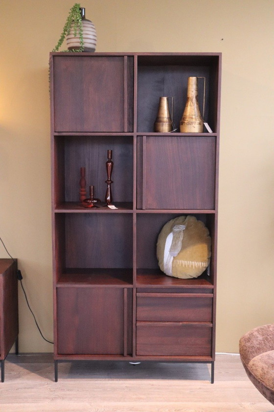 ## sold Eleonora Jimmy wall cabinet Jimmy cabinet This beautiful cabinet called Jimmy is a perfect addition to any interior. With its stylish design and versatile storage space, this piece of furniture is a real eye-catcher in any room. Made of mango wood. Dimensions (h x w x d) 180x90x40 cm.