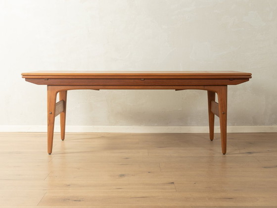 A refined masterpiece of Danish functionality that effortlessly transforms from a coffee table into a dining table thanks to a concealed elevator mechanism. Extendable tabletops maximize spatial flexibility and adapt to different needs. Carefully crafted medium-brown teak wood reflects lasting quality and radiates a cozy warmth. A timeless piece that, after careful restoration, is in very good vintage condition.