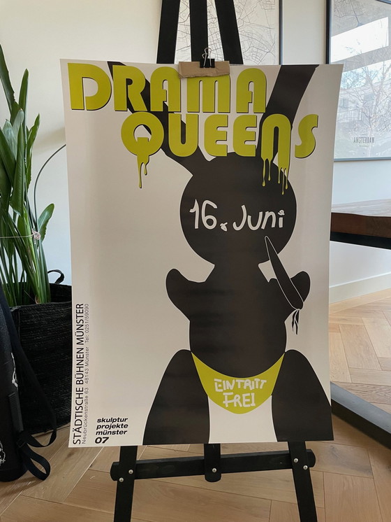 Elmgreen & Dragset, Skulptur Projekte Münster / Städtische Bühnen Münster (Drama Queens / Jeff Koons - Rabbitt), 2007, Printed in Germany. Rare poster from the 2007 Skulptur Projekte Münster, featuring a tribute to Jeff Koons' Rabbit. Bold and iconic, this piece captures Elmgreen & Dragset's wit and style. In good condition with minor wear, never framed, and securely shipped in a sturdy tube—a must-have for collectors