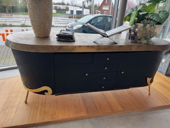 ConditionGoodColorsGold, BlackMaterialWood, Metal, LeatherNumber of items1BrandEric KusterHeight96 cmWidth245 cmDepth100 cm