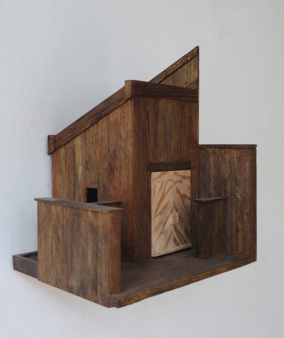 Unique stained wooden wall art piece. Artist Eric van Solm. Education: Willem de Kooning Rotterdam, 1980-1985, Department of Plastic and Spatial Design. Registered with R.K.D.