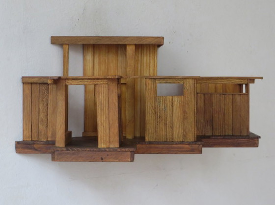 Unique stained wooden wall art piece. Artist Eric van Solm. Education: Willem de Kooning Rotterdam, 1980-1985, Department of Plastic and Spatial Design. Registered with R.K.D.