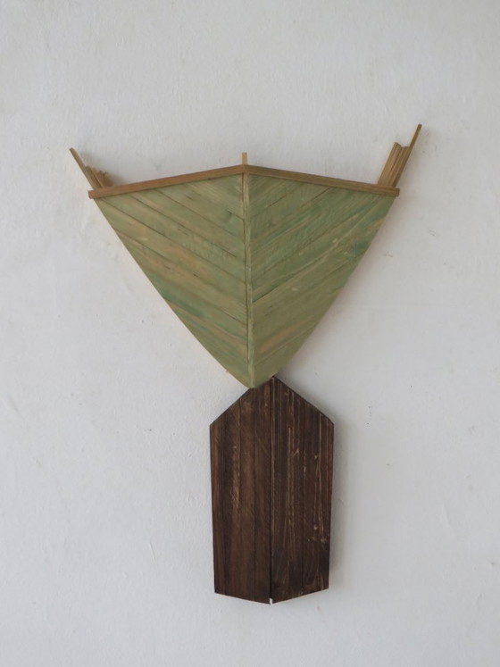 Unique painted wooden wall object. The artist Eric van Solm. Education: Willem de Kooning Rotterdam, 1980-1985, Department of Plastic and Spatial Design.