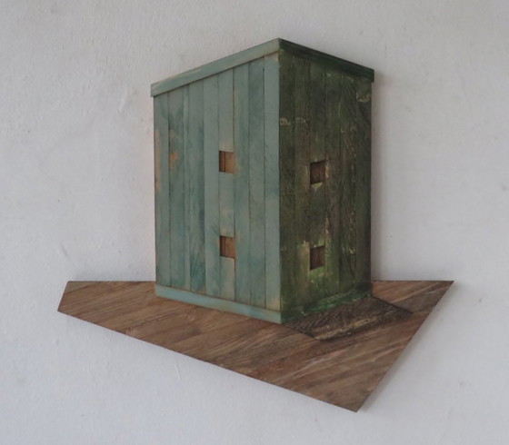 Original painted wooden wall sculpture. Artist Eric van Solm. Education: Willem de Kooning Rotterdam, 1980-1985, Department of Visual and Spatial Design.
