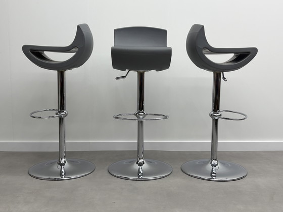 Beautiful set of 3 Ciao designer bar stools designed by Erik Bjornsen. These Softline Allkit bar stools are a real eye-catcher in any kitchen or dining room and are easy to clean thanks to their robust plastic seats.