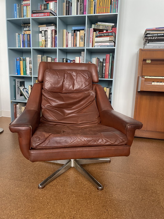 This ESA Werner Langenfeld Lounge Fauteuil is a classic piece of mid-century modern design. Upholstered in rich brown leather, it features a comfortable and stylish design with a sturdy metal base. Perfect for adding a touch of vintage elegance to any living space.