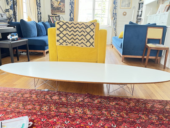 I am selling an Eames Elliptical ETR (Elliptical Table Rod Base) coffee table, produced by Vitra and designed by Charles & Ray Eames. It was quickly nicknamed the "Surfboard Table" due to its surfboard-like shape.