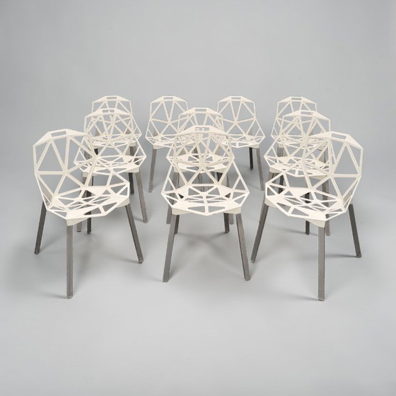 Les Merciers Gallery is privileged to offer you a major acquisition: a homogeneous set of 10 "Chair One" chairs. Finding such a large quantity together is rare, but their provenance makes them absolutely unique. This set comes directly from the exterior landscaping of the Louvre Museum in Paris. Whether furnishing a spacious dining room, a prestigious meeting room, an architecture firm, or a high-end terrace, this set will instantly infuse your space with the aura of the world's most famous museum.
