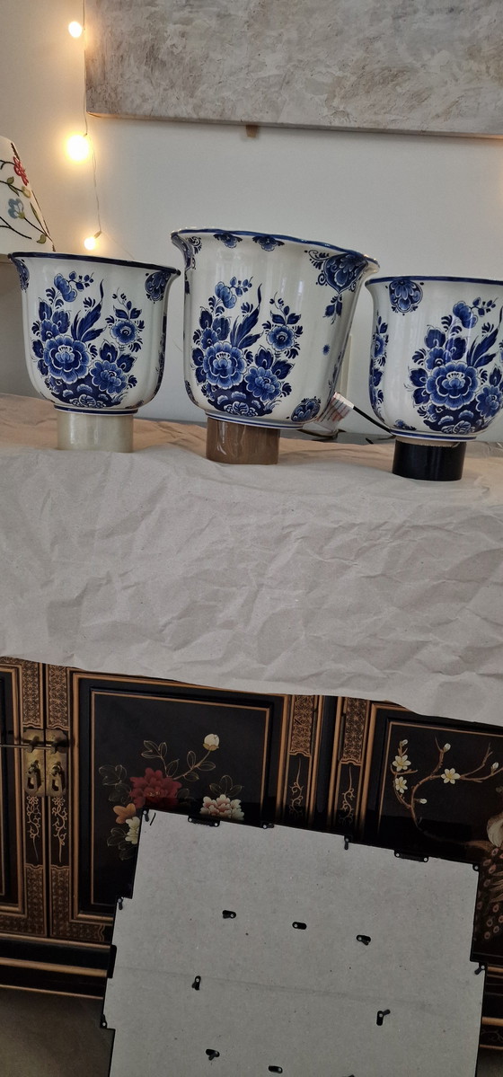 Discover the timeless elegance of this exclusive set of three hand-painted Delft blue cachepots. With their refined floral decorations in rich shades of blue, these pots instantly add a touch of class and ambiance to any interior. Perfect for displaying your favorite plants or as a luxurious home accessory, these cachepots are a testament to craftsmanship and style.