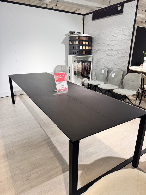 The Mobitec Float is an elegant, minimalist dining table with an ultra-thin solid oak top that visually appears to "float" above the legs, and a sleek, modern profile that gives your interior a spacious, light feel. Thanks to the intelligent extension system, you can quickly create extra length when you need more seating—perfect for dinners with family and friends.