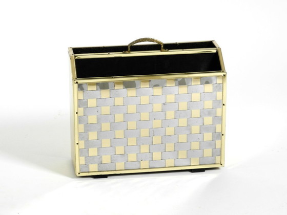 Exceptional, rare 1980s brass magazine rack in Hollywood Regency style.