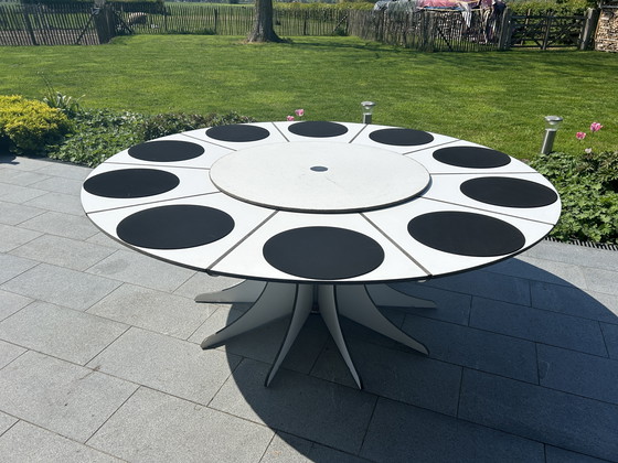 Round top rotates so everyone can be served (Lazy Susan). This one could use a new base, but I haven't gotten around to it yet.