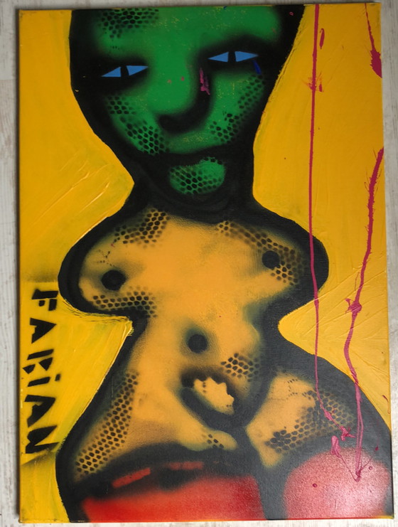 The meetings between the two gentlemen followed one another at a rapid pace, after which Herman taught the young artist the intricacies of painting. On countless canvases, both worked together on the performance, with Fabian regularly taking care of the background. Fabian learned quickly and eagerly and both worked on Herman's artworks from countless locations. This intensive collaboration resulted in a new joint project in 1999 with the care of the complete furnishing of the first Herman Brood café, which was designed in a very artistic way under the name Go-Ape. It became clear that Herman Brood was very charmed by his pupil when Fabian received the invitation to start his own studio together with Herman in order to work together even more intensively. Fabian has since built up a stable and well-known name in the established art world.