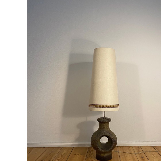 This beautiful ceramic floor lamp from Denmark is from the 1970s. The lamp base is made of ceramic, the shade is made of textured fabric and the holder is made of brass. Height: approx. 135 cm The lamp is in good condition and can be sent by arrangement.