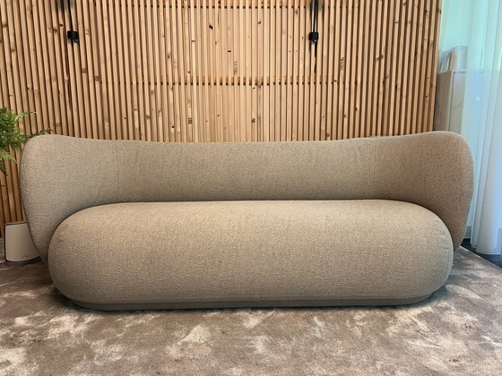 The Rico series welcomes curves and volumes into a classic design defined by soft lines and an embracing expression. Contrasting the sturdiness of the three-seater’s frame, the sofa has an upholstery of timeless, yet easeful bouclé fabric, which is woven of uneven yarn to attain the rich, loopy texture of the surface. The curvaceous nature of the series adds a modern union of comfort and elegance to any room and makes you feel drawn into its motherly embrace.