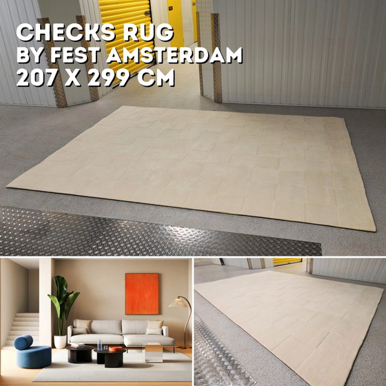 Enhance your living space with the Fest Amsterdam Checks Rug in Medium (207 x 299 cm). Featuring a modern, minimalist checkered pattern in subtle neutral tones, this rug complements various interior styles—from contemporary to Scandinavian. Crafted from premium materials (80% wool, 20% cotton backing), it's not only visually appealing but also exceptionally comfortable and durable.