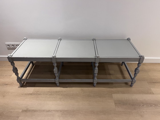 ConditionGoodColorsGreyMaterialWoodNumber of items1BrandFlamantHeight50 cmWidth152 cmDepth50 cmSeat height47 cm