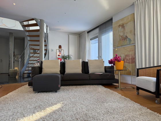 Introducing the Flexform Long Island 05, a sophisticated three-seater sofa that embodies modern elegance. Crafted in a deep grey linen, this piece offers a refined aesthetic that seamlessly integrates into any contemporary living space. Accompanied by three additional back cushions in a natural linen hue, it provides both comfort and style, inviting you to unwind in luxury.