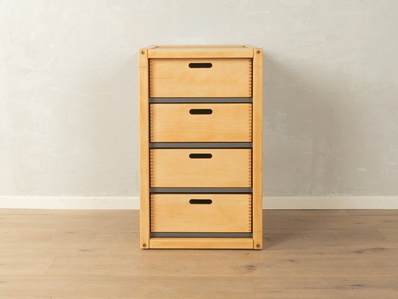 Profile system by Flötotto from the 1970s. Container with four drawers. The frame and drawers are made of solid beech wood. Original HPL coating in grey.