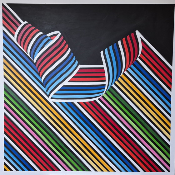 Let yourself be carried away by the dynamics of "Flow in the Wind". This abstract artwork plays with lines and colors that seem to dance on an invisible breeze. The vibrant stripes in red, blue, green, yellow, and pink create a visual spectacle that brings any space to life.
