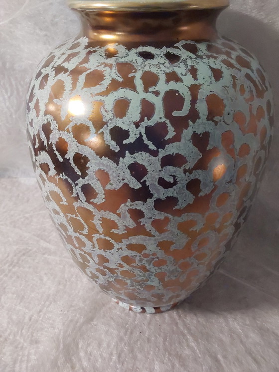 This beautiful Fohr-Keramik vase from West Germany is a stunning example of mid-20th-century craftsmanship and design. With its unique glaze and refined color palette, it adds a touch of elegance to any room. Ideal for displaying flowers or as a standalone piece of art, this vase is a must-have for any vintage ceramics collector. The gold on the rim has diminished due to age.