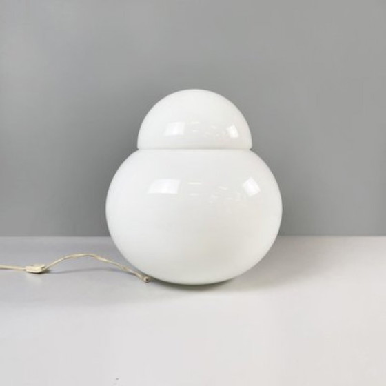 The 'Daruma' table lamp by Fontana Arte is a sublime example of modern design, combining elegance and functionality. With its spherical shape and opal white glass, this lamp emits a soft, enveloping light, ideal for creating a welcoming atmosphere in any space.