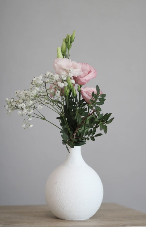 The vase is manufactured using 3D printing, which creates the distinctive surface texture and gives each vase its own unique character.