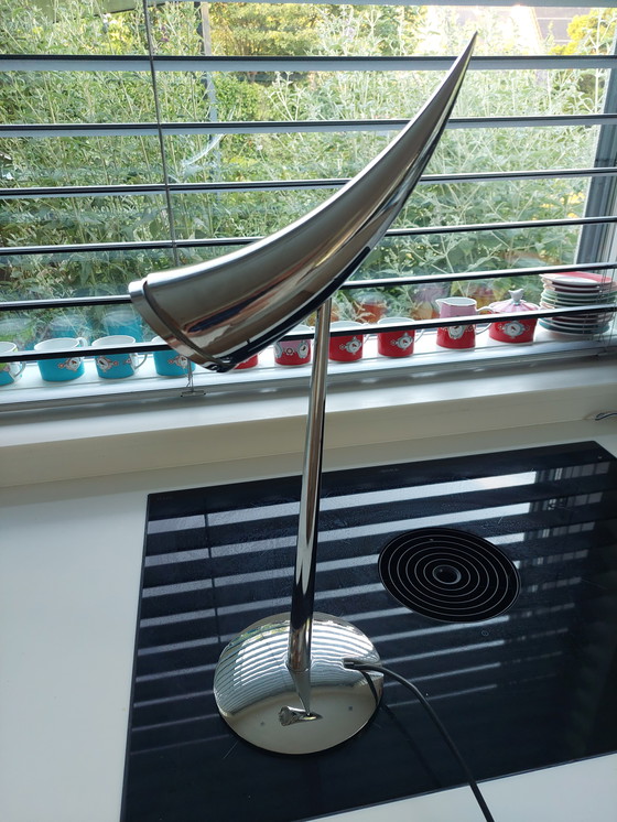 Designed by Philippe Starck, this Fos Ara table lamp is a stunning example of modern design. Made of high-quality metal, it has a sleek and elegant silver finish. Perfect for contemporary interiors, the lamp offers both style and functionality. It is an ideal choice for those looking for a unique and stylish lighting solution.