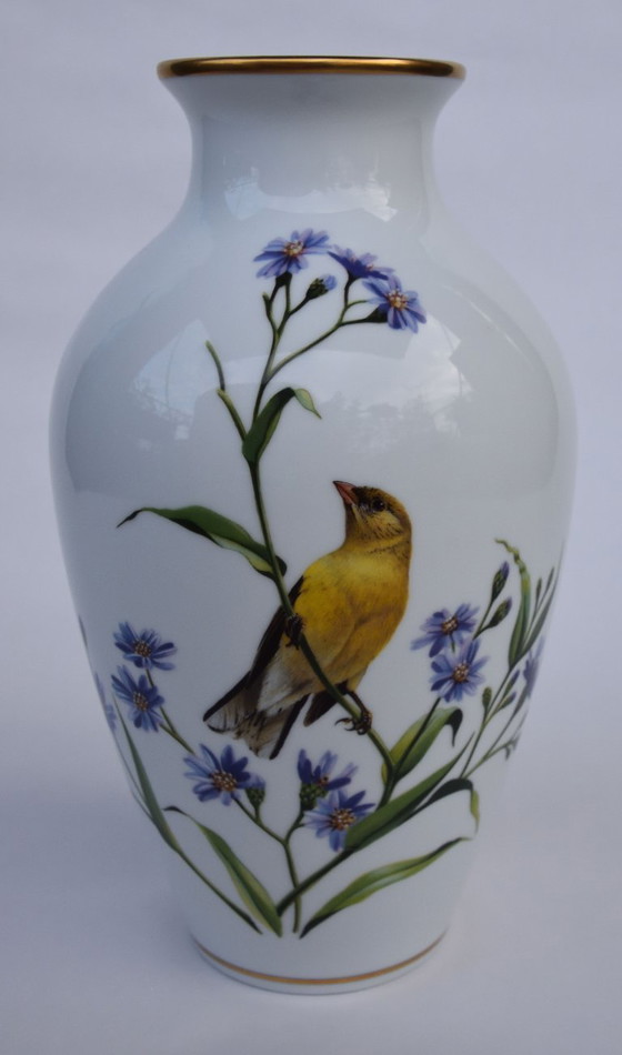 Limited first edition Franklin Mint vase : Goldfinch in Autumn. Vase signed by A. J. Rudisill. Beautiful large vase in very good condition from 1986.