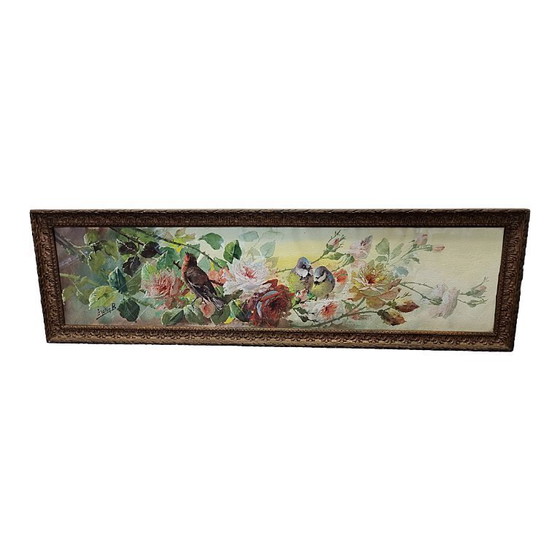 French watercolor with flowers and birds by Gaston B, dating from the first half of the 1900s. Beautiful and decorative watercolor featuring various flowers and birds. It is signed Gaston B in the lower left corner; unfortunately, no further information about the painter was found. In the original frame and behind glass.