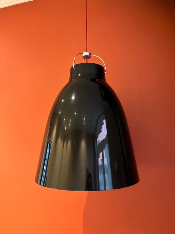 The Fritz Hansen Caravaggio P4 pendant lamp is a masterpiece of industrial design that adds a refined and modern touch to your interior. With its glossy black paint and striking red cord, this lamp is a real eye-catcher that fits perfectly in a contemporary home.