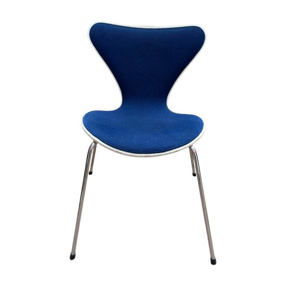 This Fritz Hansen dining chair is a real eye-catcher in your interior. With its iconic shape and stylish blue upholstery, it adds a touch of Danish design class to any room.