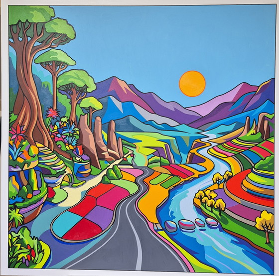 Dive into a world full of color and fantasy with this painting, 'Future Landscape'. This artwork brings an explosion of vibrant hues and abstract forms that transport you to a futuristic landscape. Perfect for anyone wanting to brighten up their space with a touch of creativity and imagination.