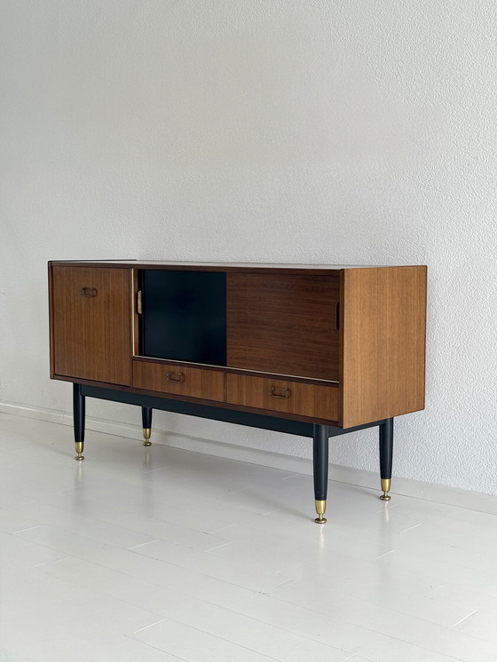 Sideboard produced by E. Gomme for G-Plan in England. Mid-century design from the 1950s/1960s with warm wood tones and brass details.