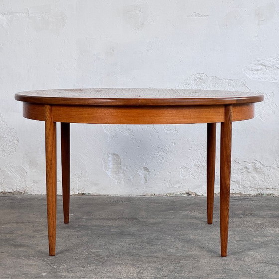 This round dining table is a quintessential piece of British mid-century furniture, manufactured by G-Plan as part of their renowned "Fresco" or "Sierra" ranges during the 1970s. Known for their exceptional build quality and timeless Scandinavian influence, G-Plan tables are celebrated for their organic shapes and functional design.