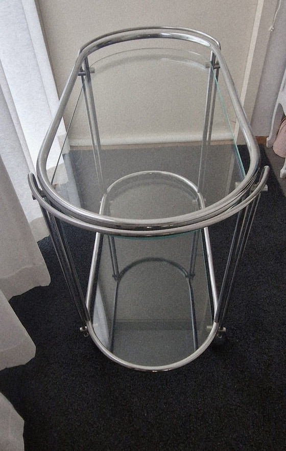 Discover the elegance of this beautiful serving trolley from Galotti & Radice, perfect for any modern space. This stylish trolley combines stainless steel with glass for a sleek and refined look.