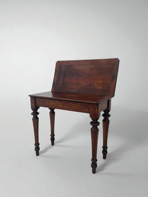 This 19th-century wooden game table is a piece of great elegance and functionality, perfect for decorating classic and refined spaces. When open, it measures 89 cm wide, 90 cm long, and 79 cm high, providing ample space to accommodate multiple people. When closed, it reduces to 45 cm wide, 91 cm long, and 81 cm high, making it more compact and easily adaptable to smaller spaces. The table is crafted from high-quality wood, with a surface that retains the charm of bygone eras, while showing some signs of age that accentuate its character and history. The turned legs add a touch of elegance, giving the piece a sturdy and distinctive look. Please carefully examine the images, as the table shows signs of wear due to age, which enhance its antique charm. Pickup is available about an hour from Milan, but low-cost shipping is also available, making this prized piece accessible anywhere.