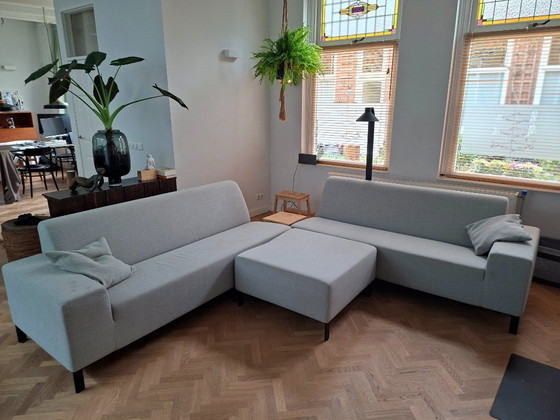 The sofa consists of three elements: a 207 cm seating element, another 199 cm seating element, and an 82x82 cm ottoman. We used to have a very long sofa, now as a corner configuration. Perfect for a spacious living room.