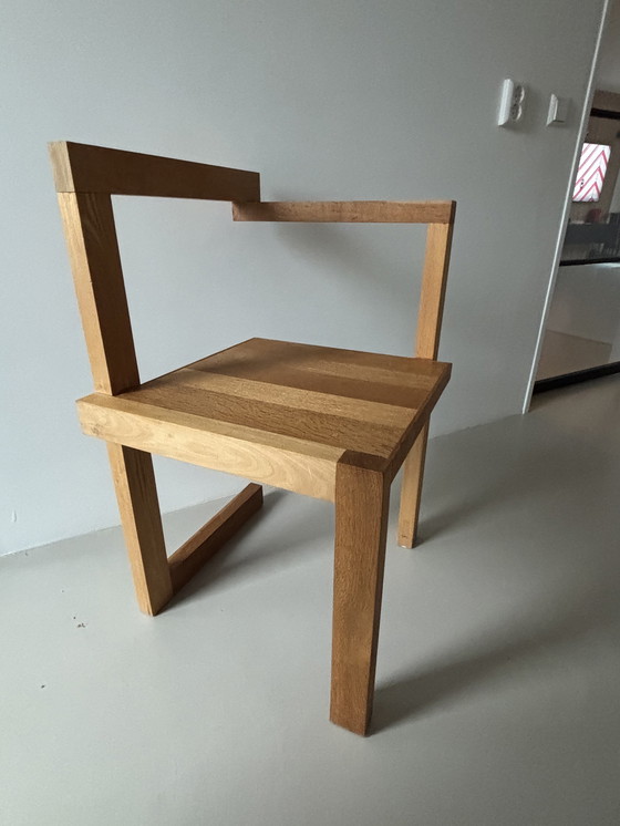 This exquisite handmade corner chair, inspired by the iconic Gerrit Rietveld style, is a testament to modern design and craftsmanship. Its minimalist form and geometric lines make it a striking addition to any contemporary space.